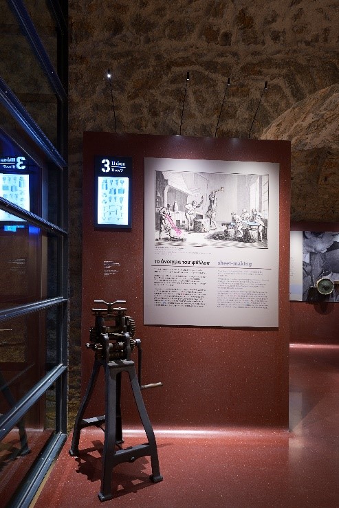 06.GR-PIOP-111032_VAR4736. View of the permanent exhibition – Sheet-making |© PIOP, V. Karavassiloglou