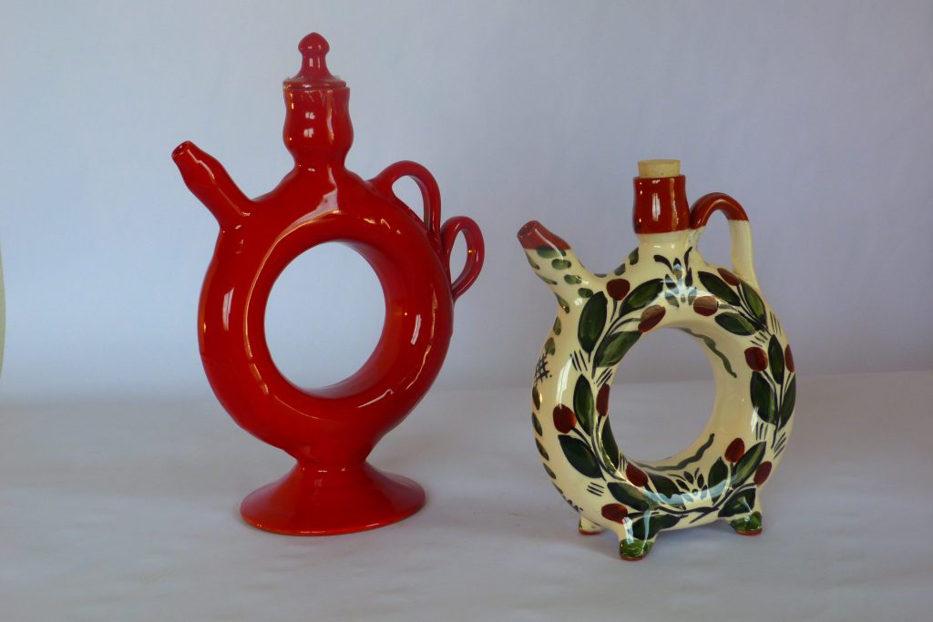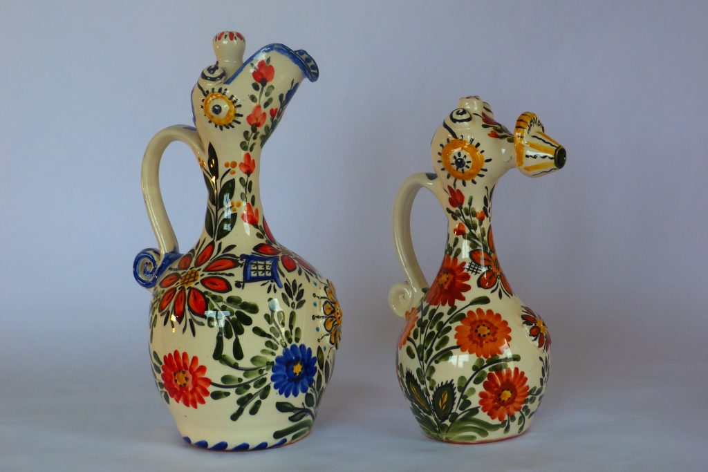 This jug full of water was curried into the church by two children, a boy and a girl with both their parents still alive, while the bride was walking in for the ceremony. They would place it, full of water under the Gospel, where it would remain throughout the ceremony to remind of the miracle in Kana, where God turned water into wine. After the end of the wedding ceremony, the couple had to take it home and drink from it for 40 days. The large handle symbolized the groom and the bride, the small one the babies that were to come, and the horseshoe was for good luck.