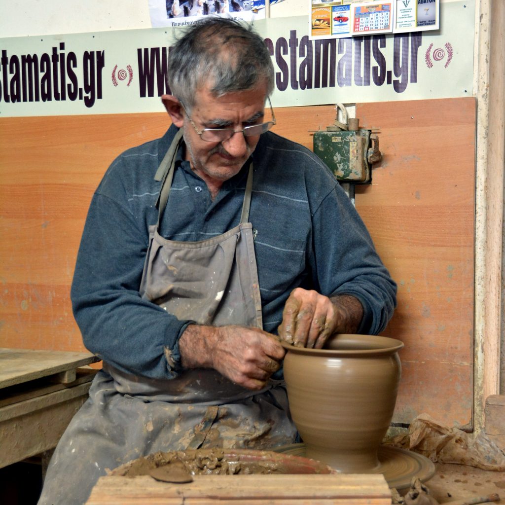The ceramic tradition of Lesvos Island in Greece stretches back over 5,000 years, with early traces found in the prehistoric settlement of Loutropoli Thermi. That long history still lives on today in the village of Mantamados, where potter Stelios Stamatis continues his family’s craft in the “Workshop Pottery and Folk Art.”
